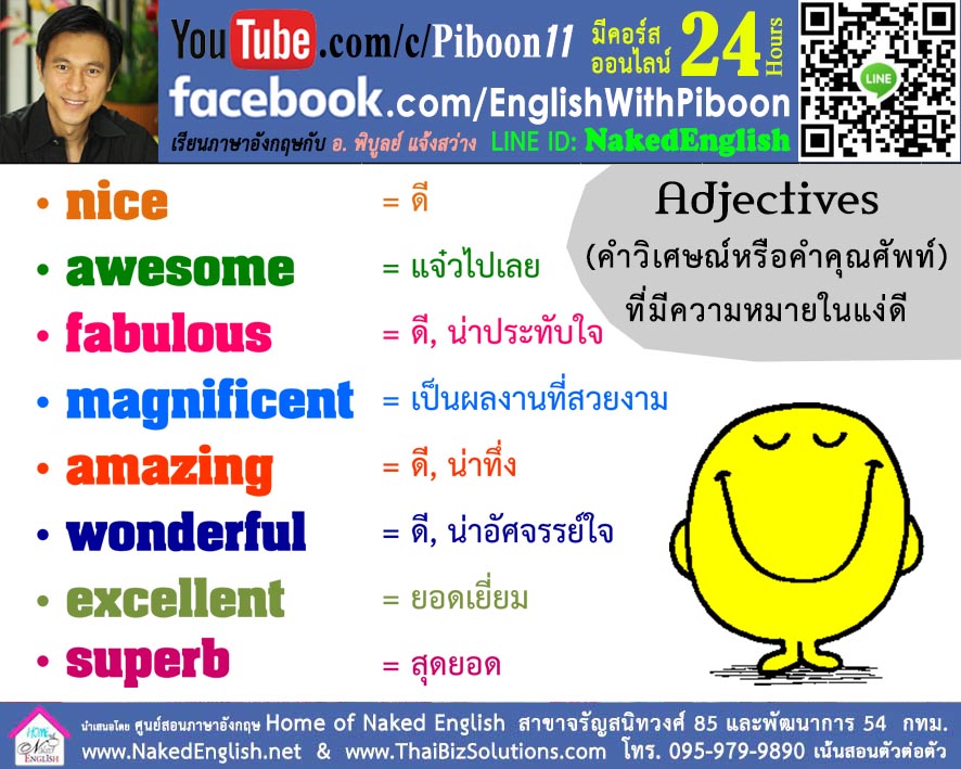 สวัสดีปีใหม่ทุกท่านครับ โพสต์แรกของปี ผมขอเสนอคำ Adjectives (คำคุณศัพท์หรือคำวิเศษณ์) ที่มีความหมายในแง่ดีหรือในแง่บวก เอาไว้ใช้เวลาที่มีคนเสนอความคิดดีๆ หรือทำอะไรดีๆ มาให้เรา นอกจากเราจะพูดศัพท์ง่ายๆว่า