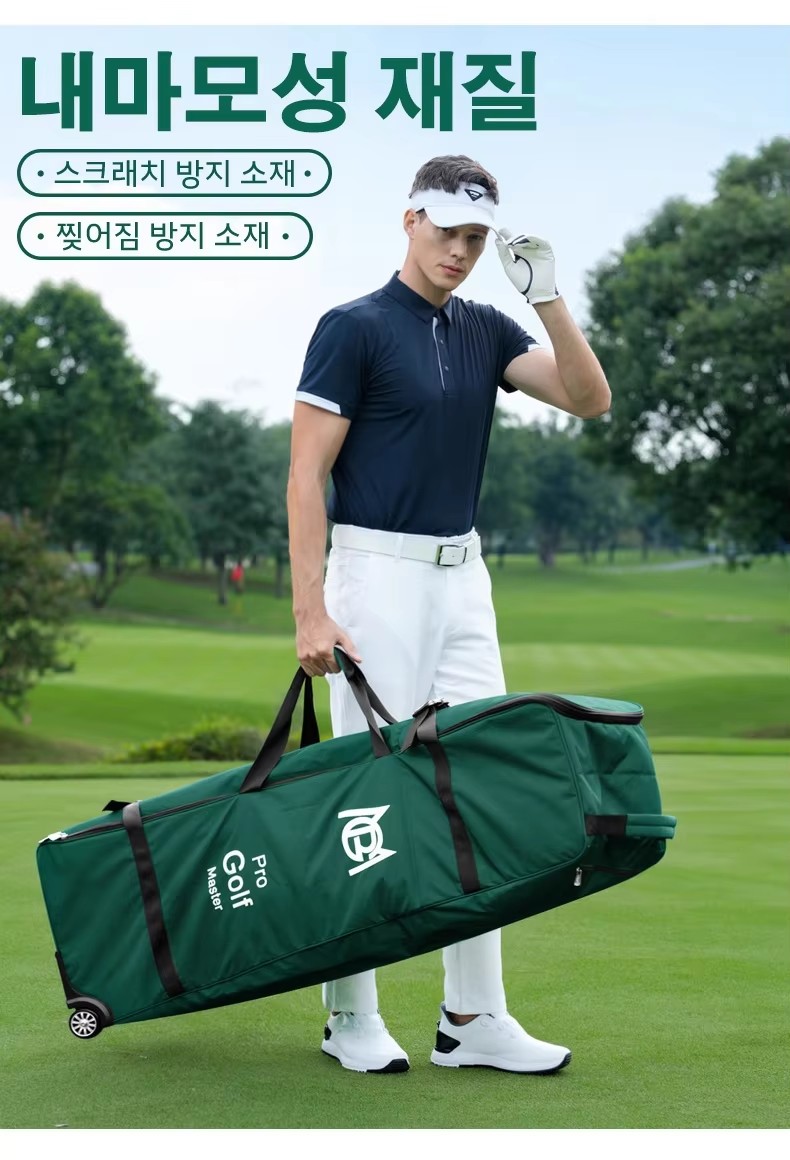 PGM HKB019 Green Waterproof Thickening Portable Foldable Golf Travel Bag with Wheels