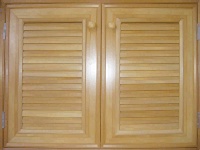 ลายไม้สักทอง ระแนงประตูระบายอากาศได้ มีพร้อมมุ้งลวดด้านใน กันแมลง ขนาด 60X 80 และ 87X65 ซม.